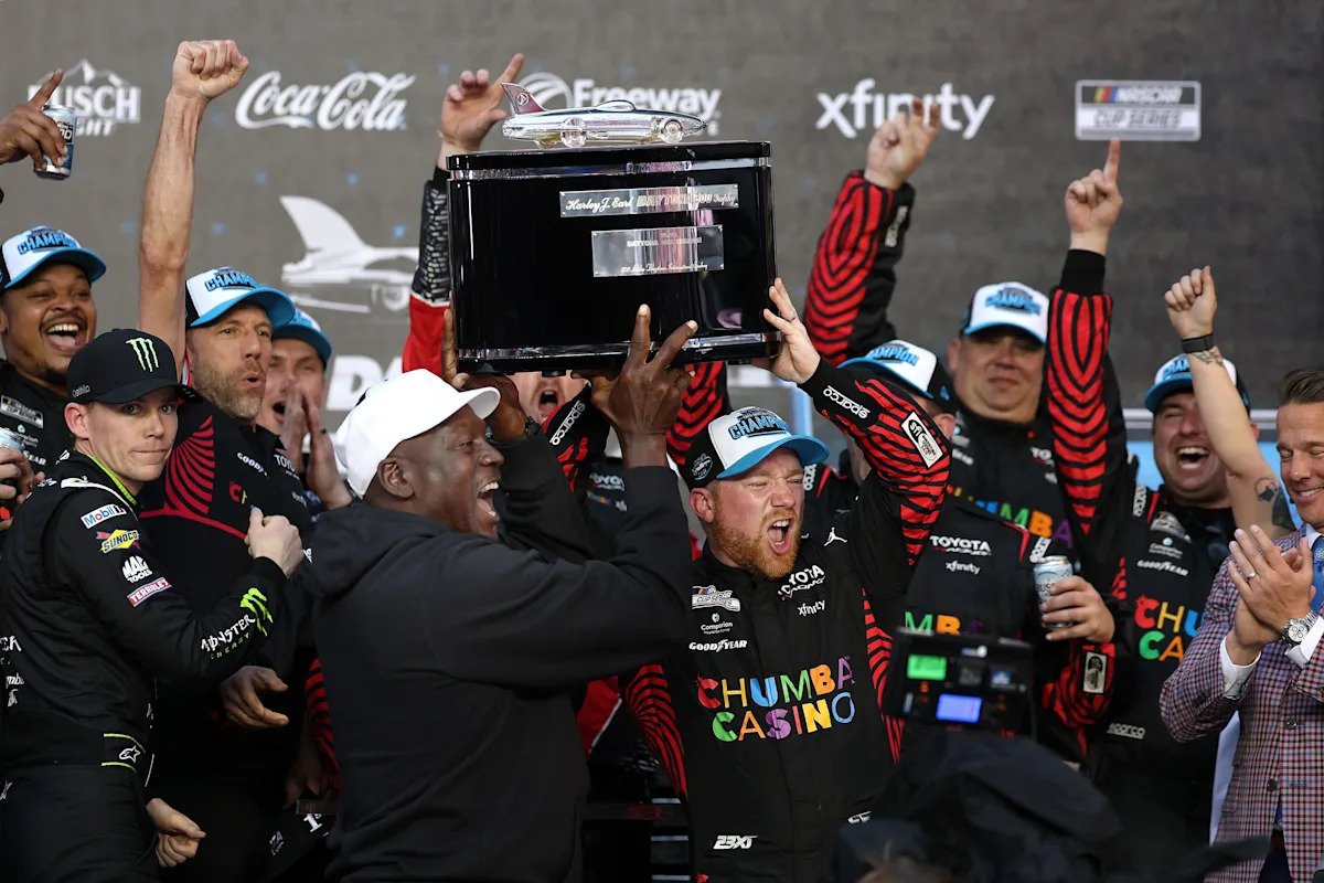 Now, though, his 23XI Racing team won NASCAR’s premier event for the first time to begin the 2026 season and Jordan was there holding up one of racing’s biggest prizes and a little fired up celebrating another title, just in a completely different role and setting than the sports world was once accustomed to seeing him.