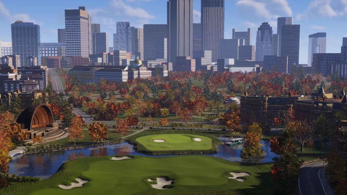Tiger Woods’ team, for instance, will take on a par-5 called “The Jup Life,” with an island green and a virtual rendering of Jupiter’s red lighthouse looming in the background. Rory McIlroy’s squad, meanwhile, will contend with “Storrowed,” a snaking par-5 framed by the Charles River and Storrow Drive.